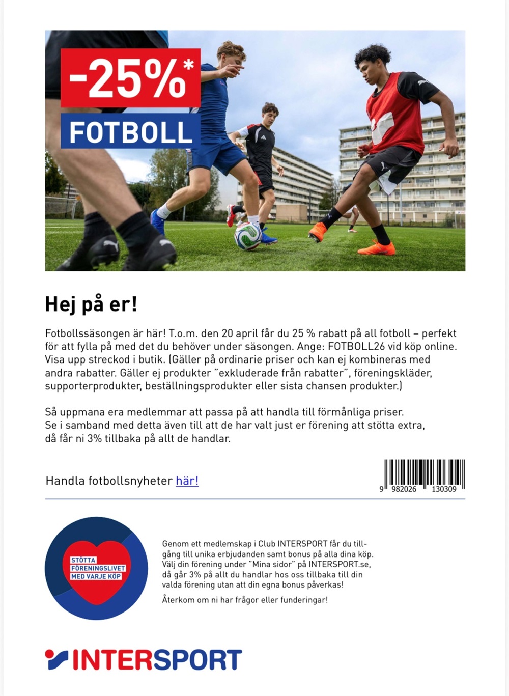 T.o.m. 20 april får du 25 % rabatt på all fotboll på Intersport – perfekt för att fylla på med det du behöver under säsongen.